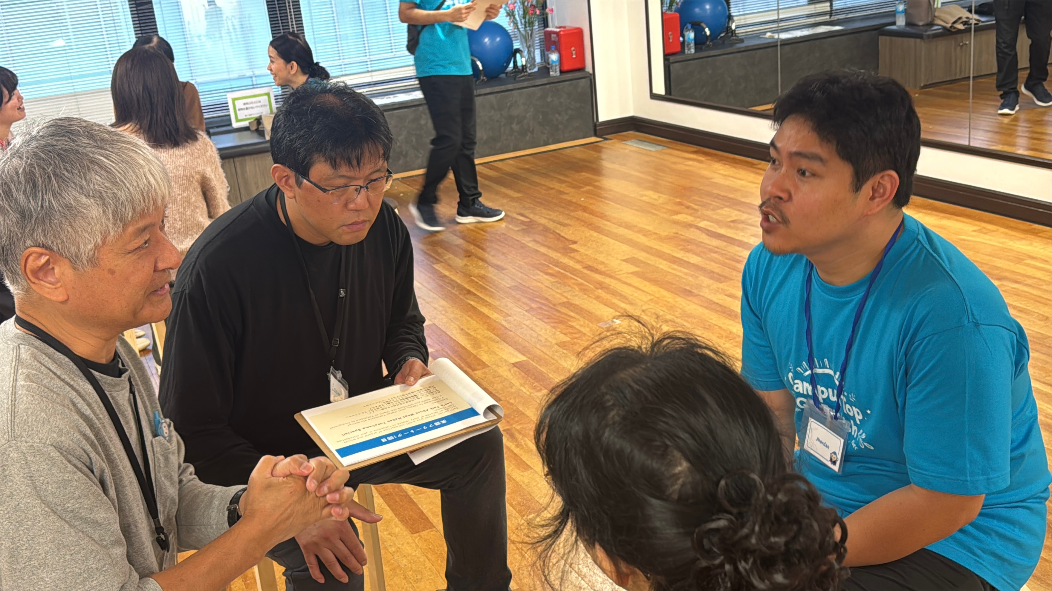 参加者は3人1組となり、そこにフィリピン人教師、または日本のスタッフが加わりテーマトークを実施。