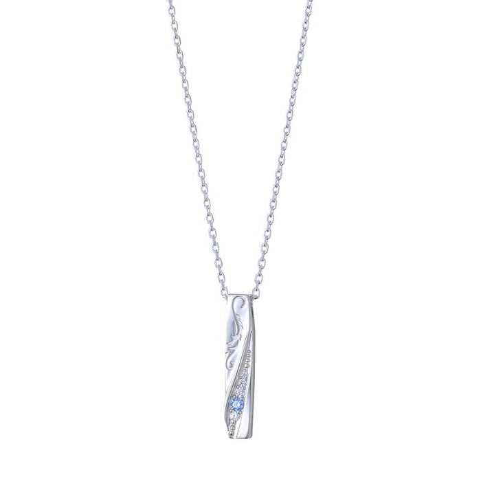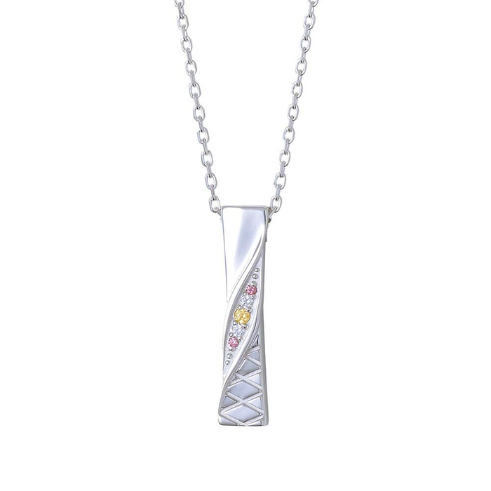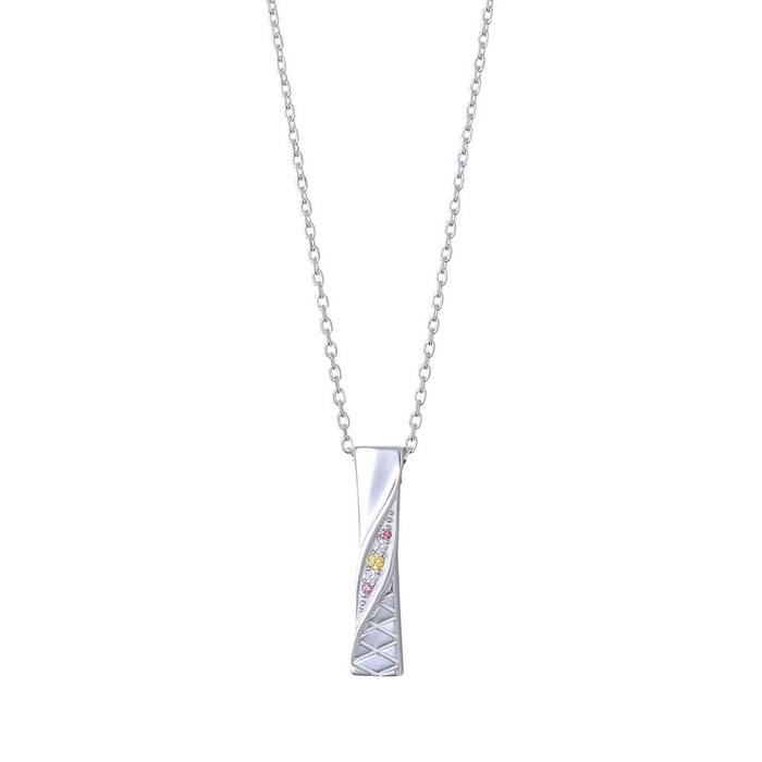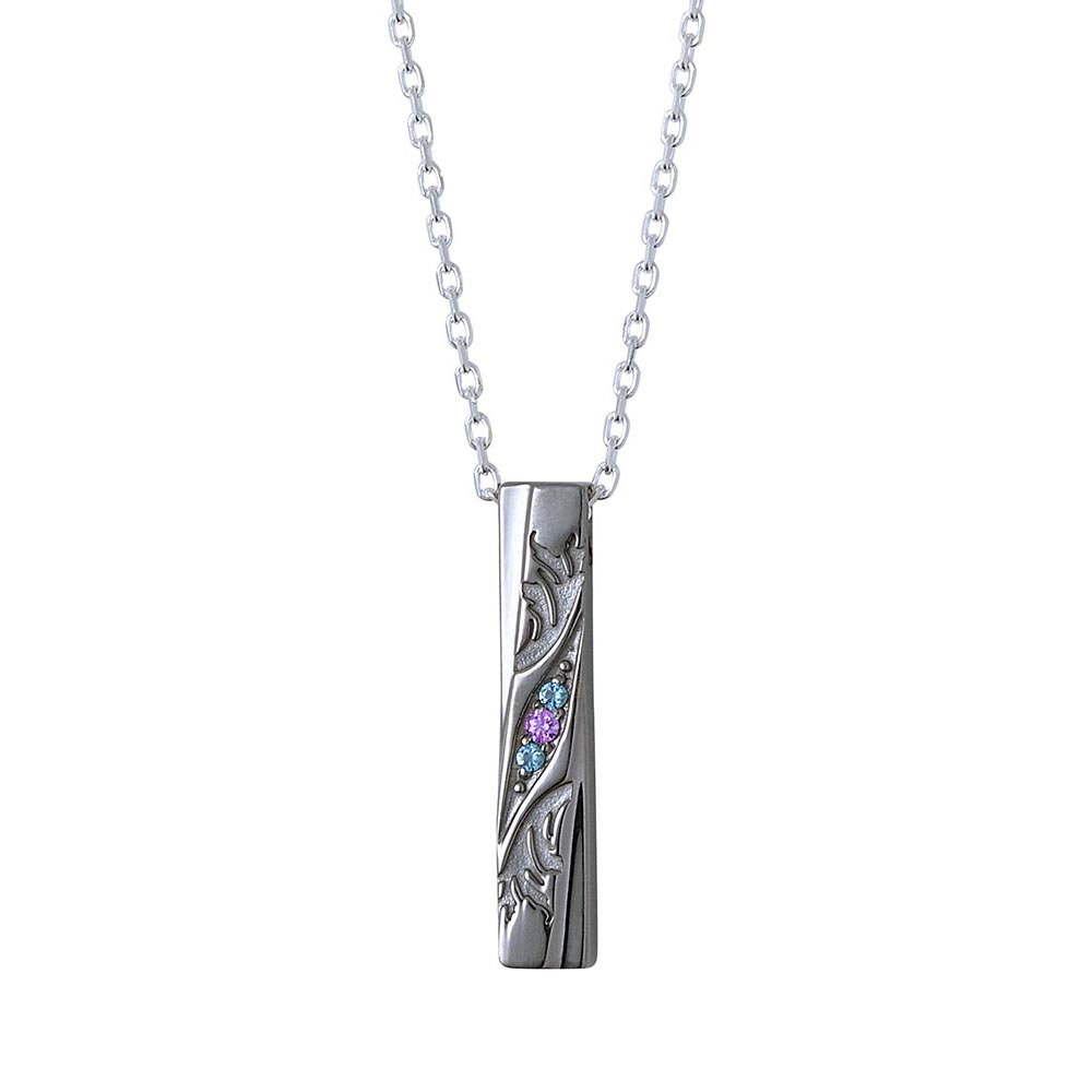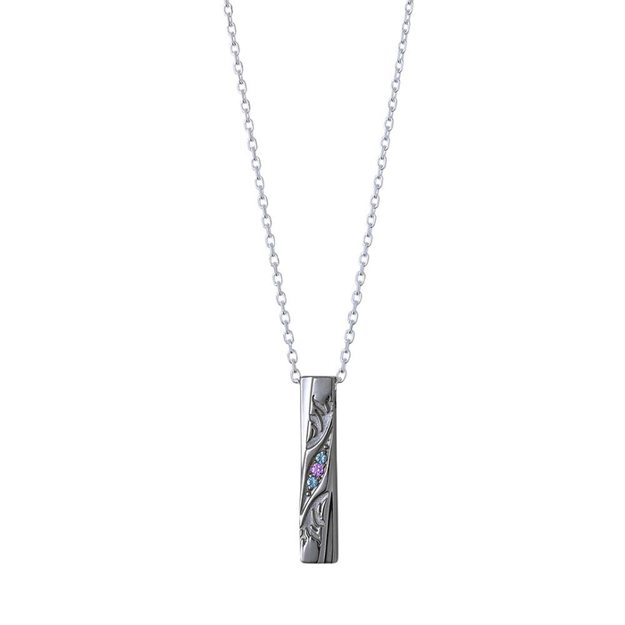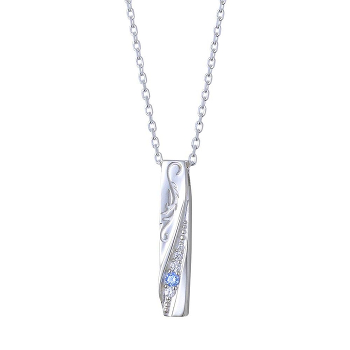TVアニメ「スケートリーディング☆スターズ」の聖クラヴィス学院をイメージしたネックレスです。作中に登場する衣装の模様をモチーフにしたバータイプのトップにイメージカラーストーンをセットしました。