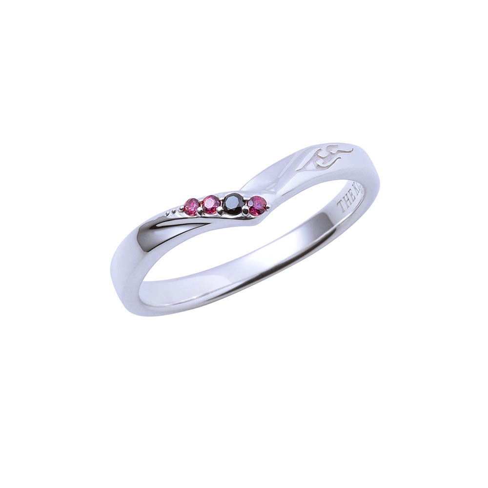 TVアニメ「スケートリーディング☆スターズ」の戌尾ノ台高校をイメージしたリングです。作中に登場する衣装の模様をモチーフにしたV字フォルムにイメージカラーストーンをセットしました。