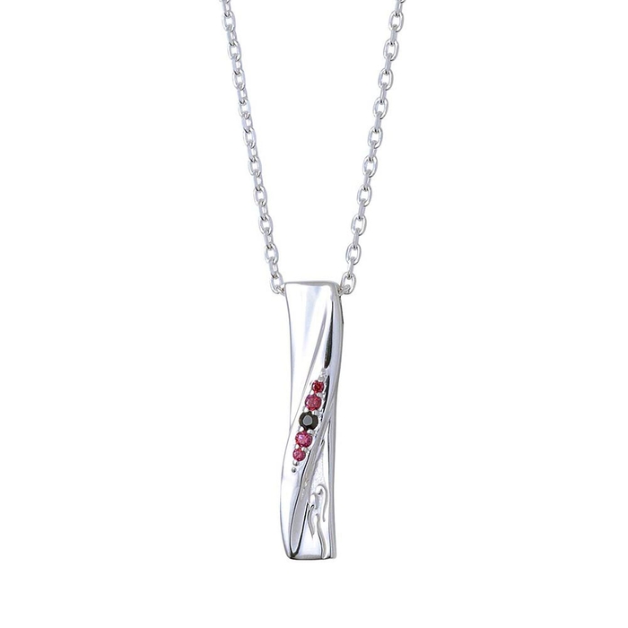 TVアニメ「スケートリーディング☆スターズ」の中帝大附属上前津高校をイメージしたネックレスです。作中に登場する衣装の模様をモチーフにしたバータイプのトップにイメージカラーストーンをセットしました。