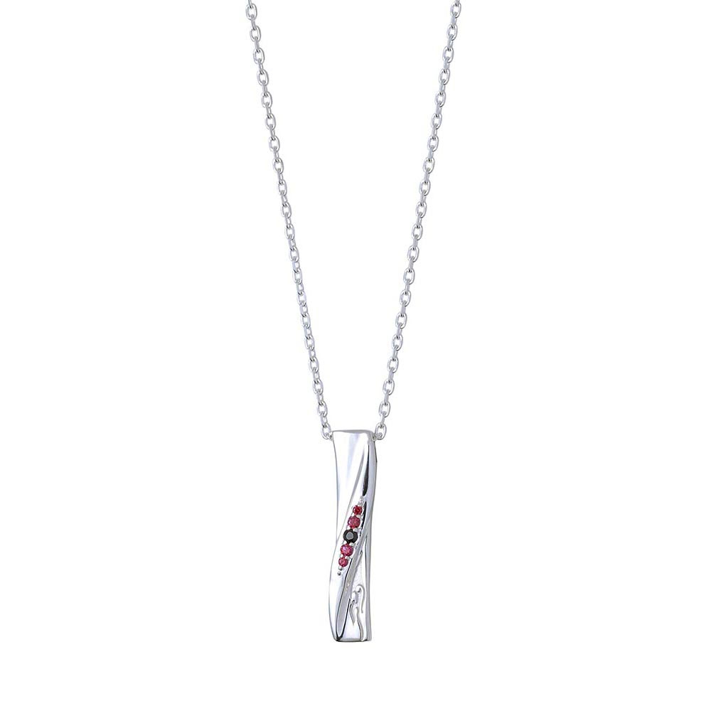 TVアニメ「スケートリーディング☆スターズ」の戌尾ノ台高校をイメージしたネックレスです。作中に登場する衣装の模様をモチーフにしたバータイプのトップにイメージカラーストーンをセットしました。