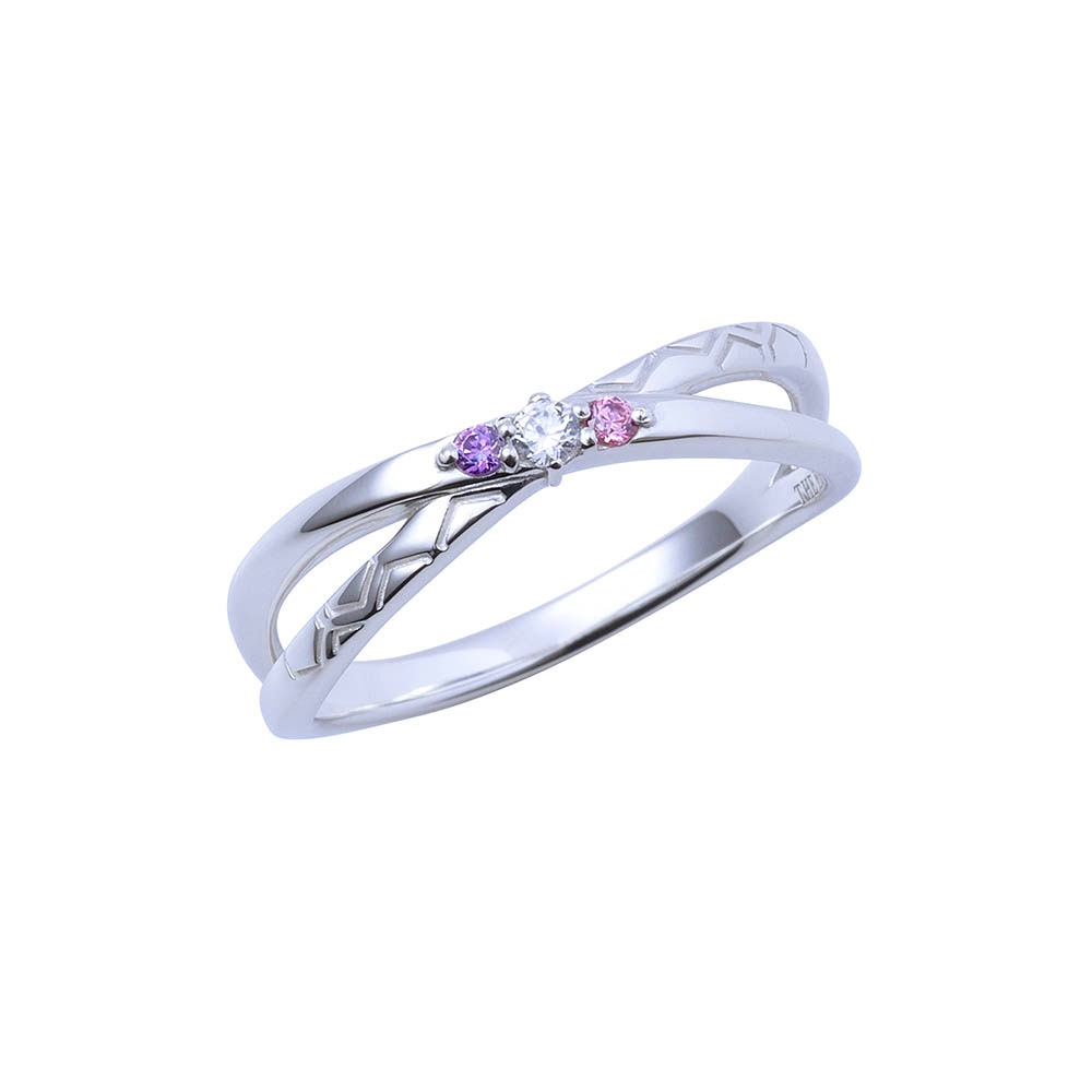 TVアニメ「スケートリーディング☆スターズ」の中帝大附属上前津高校をイメージしたリングです。作中に登場する衣装の模様をモチーフにしたクロスフォルムにイメージカラーストーンをセットしました。