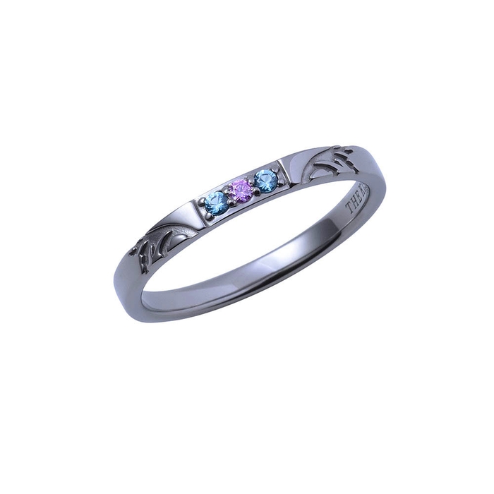 TVアニメ「スケートリーディング☆スターズ」の孤ヶ原高校をイメージしたリングです。作中に登場する衣装の模様をモチーフにしたストレートフォルムにイメージカラーストーンをセットしました。