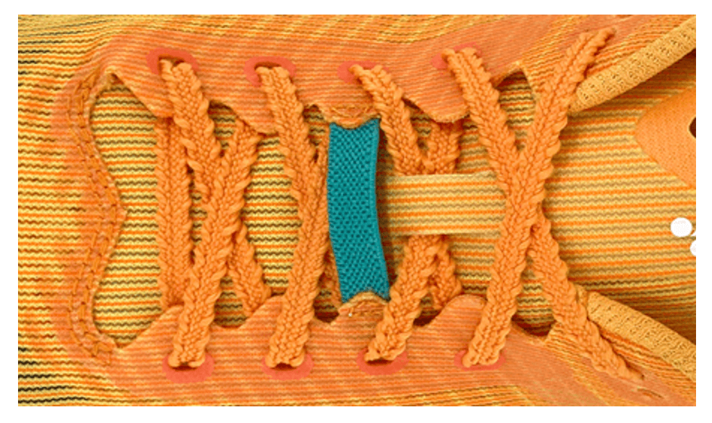 長距離走行を支える新機能として、ほどける要因となる紐のばたつきを防ぐ伸縮性のバンドを搭載しました。