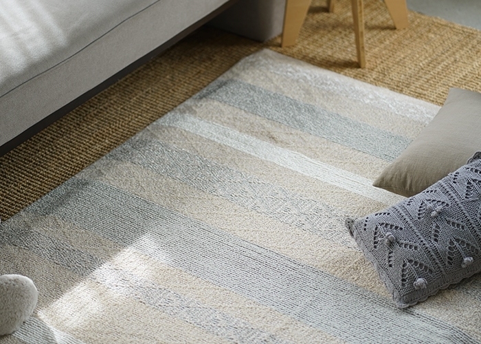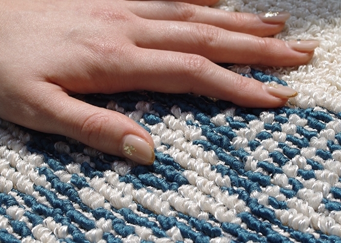 天然素材のコットンもブレンドして“さらさら”の感触も長続き。やさしい肌触りなので素足でも気持ちよくすごせます。絡み織り風のざっくり感と、敷くだけでお部屋が明るくなる爽やかな4つのカラーで、見た目にも軽やかなラグに仕上げています。