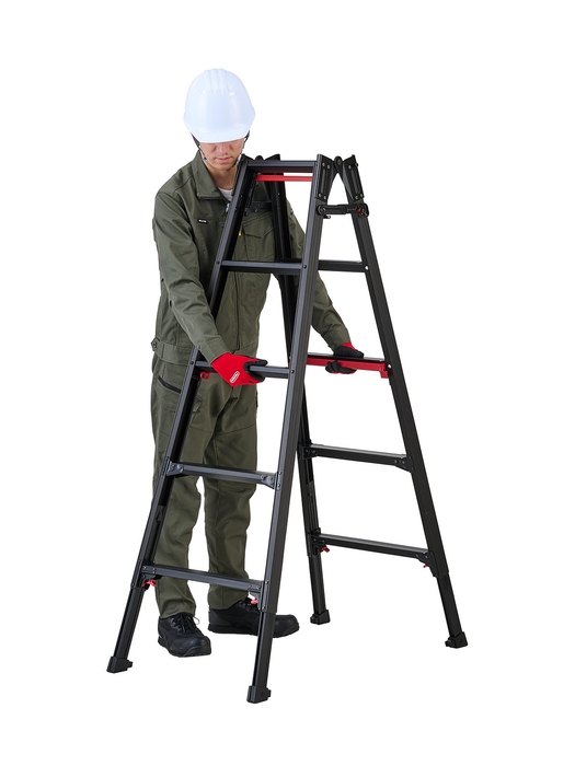 圧倒的な作業効率のアップ!立ったまま伸縮操作が行える脚立 「シャガマン」のブラックカラーが9月6日(金)[クロの日]に発売!