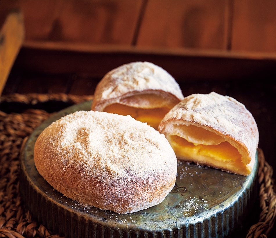 もちもちとした食感のパンの中には、香ばしいきな粉と、とろ~りとろけるカスタード。