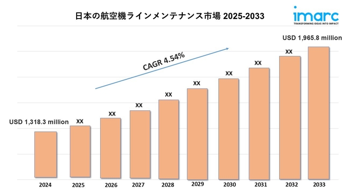 IMARCグループの最新の調査出版物「日本の航空機ラインメンテナンス市場の規模、シェア、傾向、サービス、タイプ、航空機タイプ、テクノロジー、地域別の予測2025-2033」によると、日本の航空機ラインメンテナンス市場の規模は2024年に13億1,830万米ドルに達しました。今後、IMARCグループは、市場が2033年までに19億6,580万米ドルに達し、2025年から2033年の間に4.54%の複合年間成長率(CAGR)で成長すると予測しています。