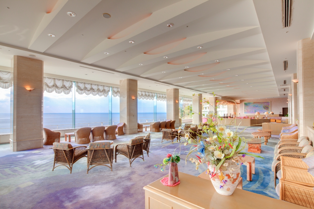 ラウンジは海抜58メートル、鳥の羽ばたく視界の高層階から眺める海は圧巻のひとこと。