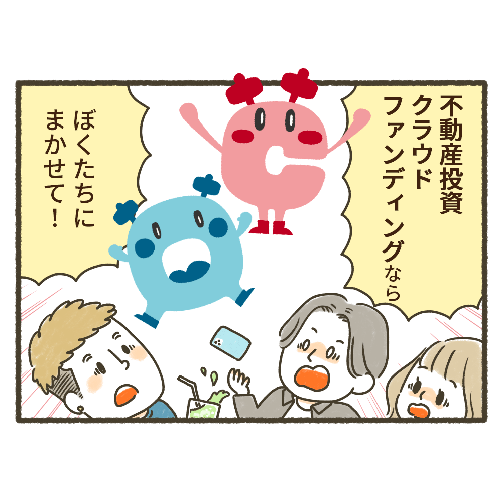 マンガでわかる!不動産クラウドファンディングについてCOZUCHIオリジナルマスコットキャラクターが解説しています。
