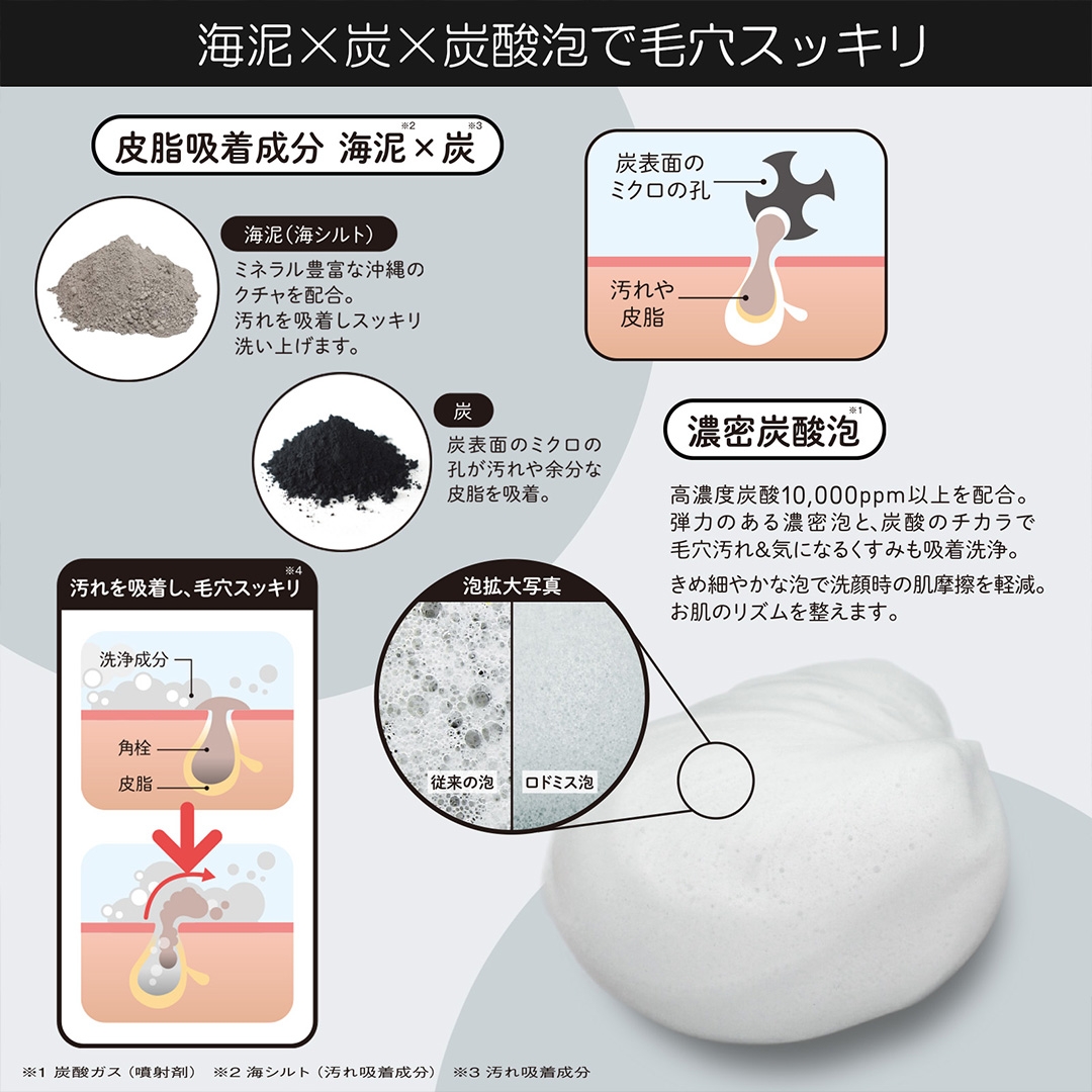 つっぱらないのに毛穴スッキリ。海泥×炭配合の炭酸泡洗顔「ロドミス フェイスウォッシュ」〈2022年8月新発売〉