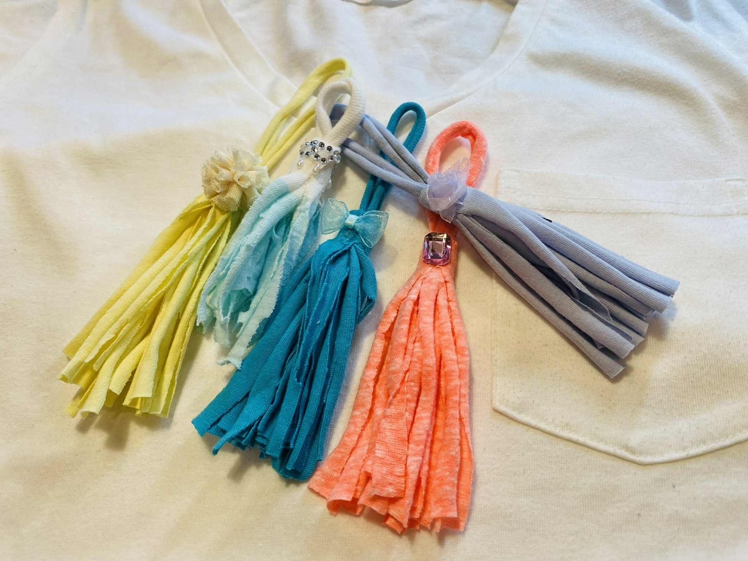 着なくなったTシャツをアップサイクルして、フリンジアクセサリーにリメイクしました。Tシャツならではの柔らかく優しい素材感が、フリンジの動きや表情をより引き立ててくれます。不要になった服に新たな命を吹き込み、サステナブルなおしゃれを楽しめる一点物のアイテムです。