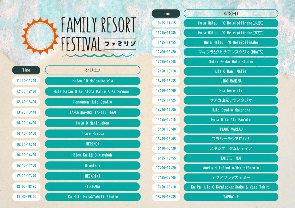 実施内容:タヒチアンダンス・フラダンスステージ、ライブ、販売ブース、