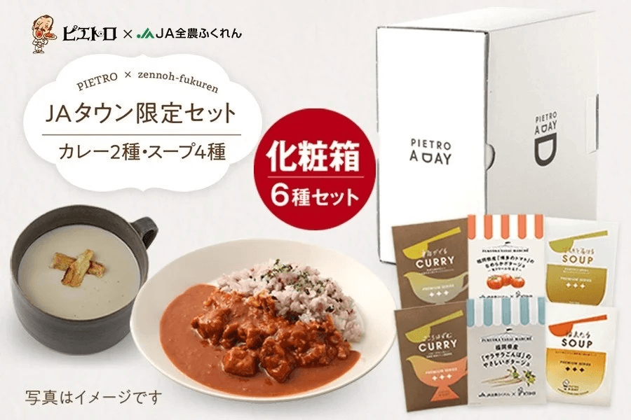 対象商品は、共同開発したオリジナルポタージュの他、株式会社ピエトロで現在販売している、福岡や九州の野菜やお肉を使用したスープやカレーを詰め合わせた、生産者、ピエトロ、JA全農ふくれんの想いが詰まった商品です。