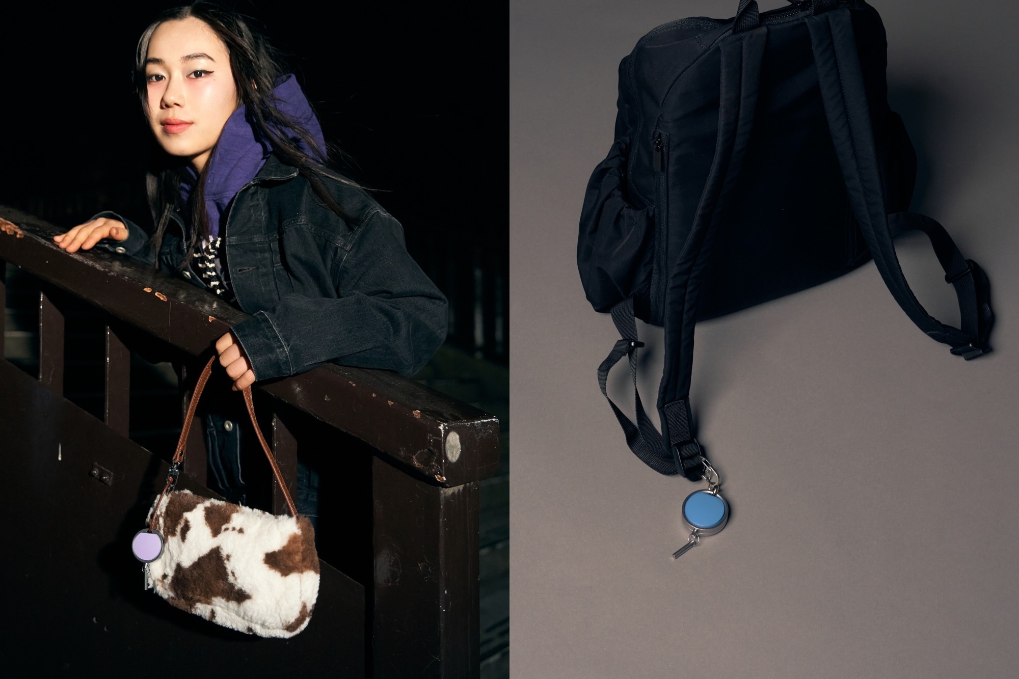 バッグなどに装着できるアクセサリー型デバイスとスマートフォンアプリを連携させ、「不安時・緊急時・平常時」の3つのモードで日常の安心をサポートします。