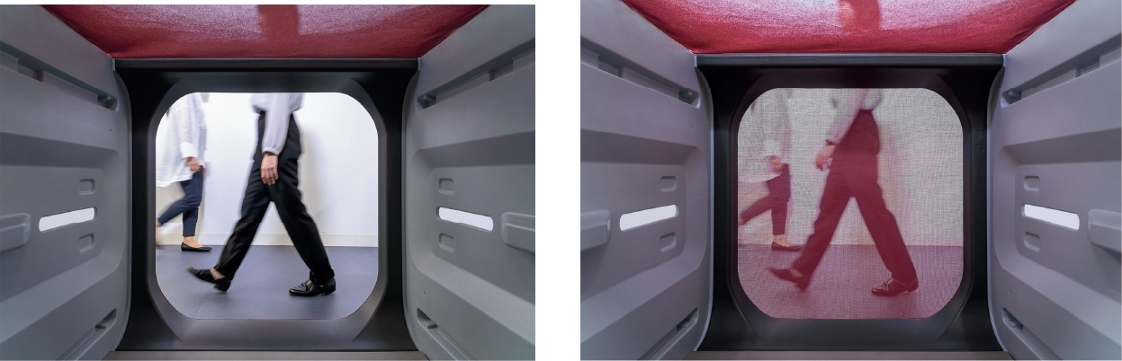 カプセル内からは外がよく見え、外からは中の様子が見えにくいため、プライバシーを確保しながら、快適性を高めました。