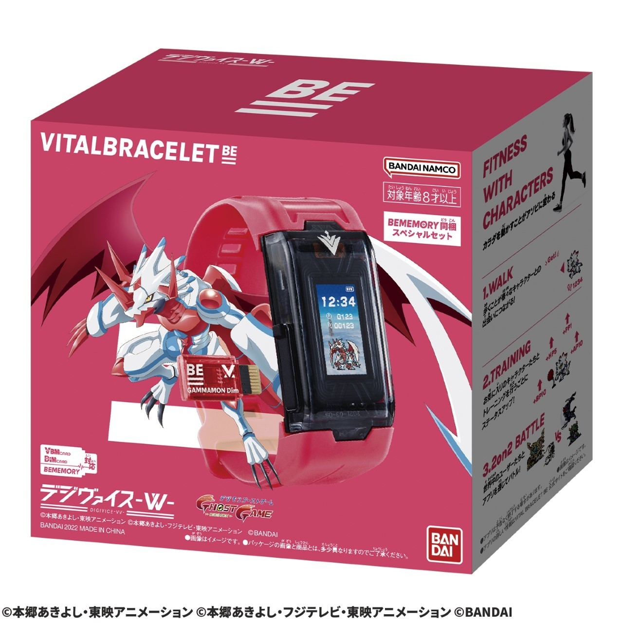 また、オリジナルの刻印が刻まれた限定仕様のVITAL BRACELET BE本体と連動アイテム「BEMEMORY ガンマモンDim」がセットになっています。