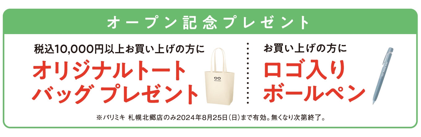 ※パリミキ 札幌北郷店のみ、2024年8月25日(日)まで。