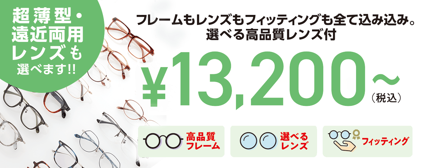 ■メガネ1組 税込¥13,200~!超薄型・遠近両用レンズも選べます!