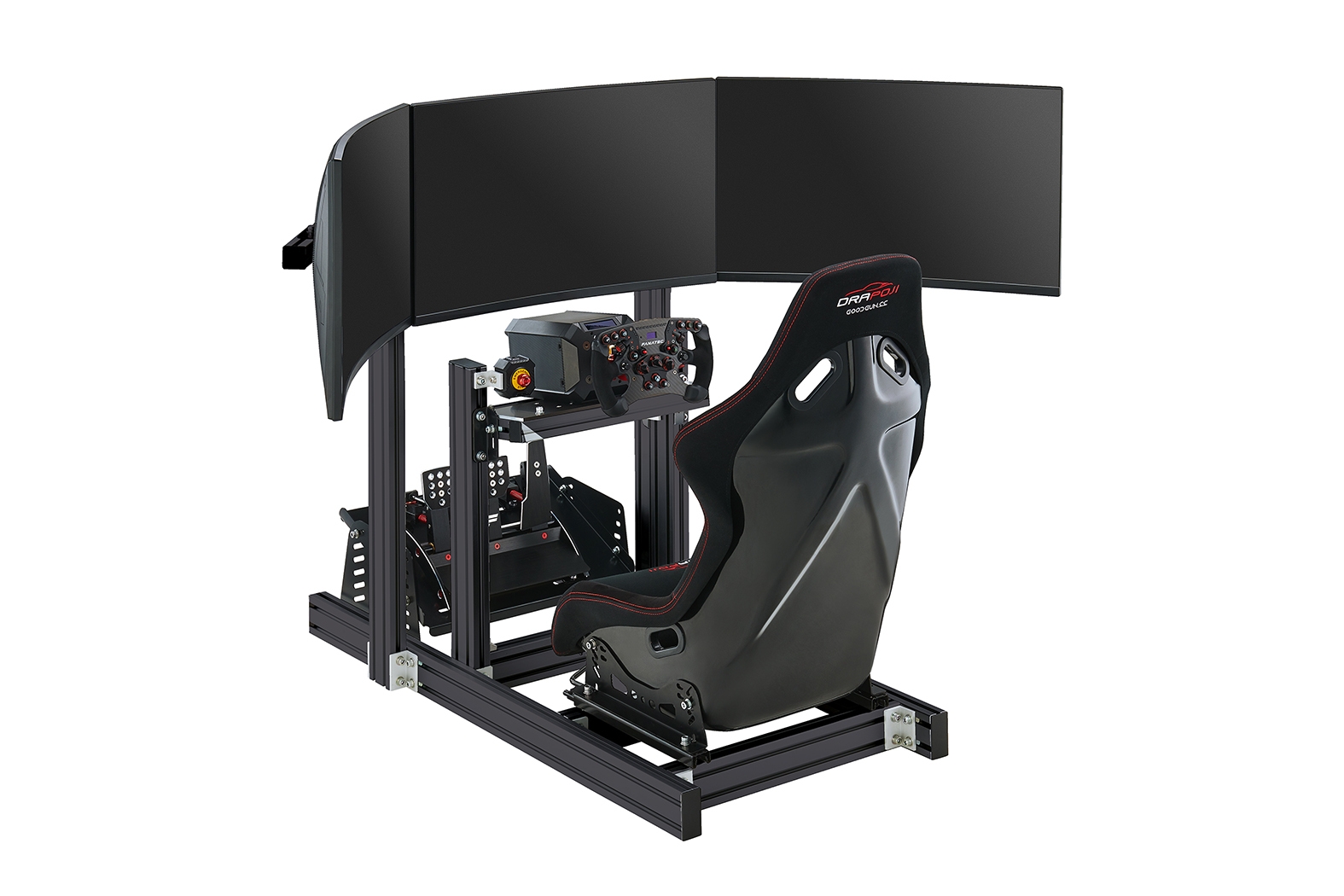 2021年に発売されたDRAPOJI ver.2は、お客様の声から「組み立て時間の短縮」のご要望を反映したモデルになります。部品数を減らしシンプルな構造となり組み立て時間が約2時間と従来品と比較し1/3程度に短縮しました。また、六角レンチのみで組み立てができ特殊な工具は不要です。高い剛性を誇り海外製品含む多様なデバイスに対応が可能となり、より本格的なeモータースポーツを楽しむ環境を提供いたします。