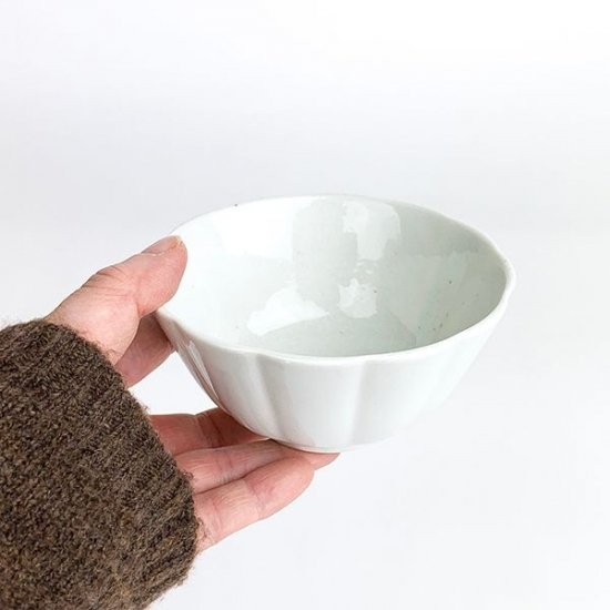 最後は、サラダボウルやフルーツボウルとして使えるボウルです。プレートに比べると縁の花びら感は滑らかですが、ちゃんと輪花型になっています。