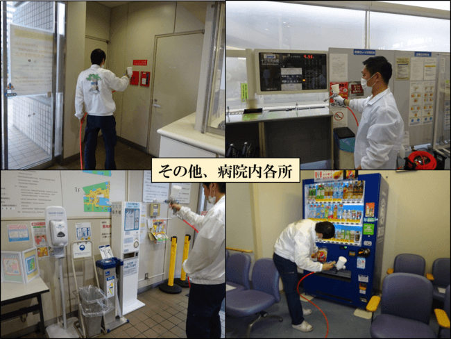 今回、抗菌バリアコーティングの施工を完了した十三市民病院は、4月27日より一般外来を休止し、新型コロナウイルス感染症患者の入院受入を行う重点医療機関として、中等症の入院患者の対応にのみ専念してこられました。この度、外来受け入れの目処がたったため、当社施工チームによる抗菌バリアコーティング剤の吹き付けを7月13日から15日の3日間にわたって院内各所に施工。再開への準備を進めています。