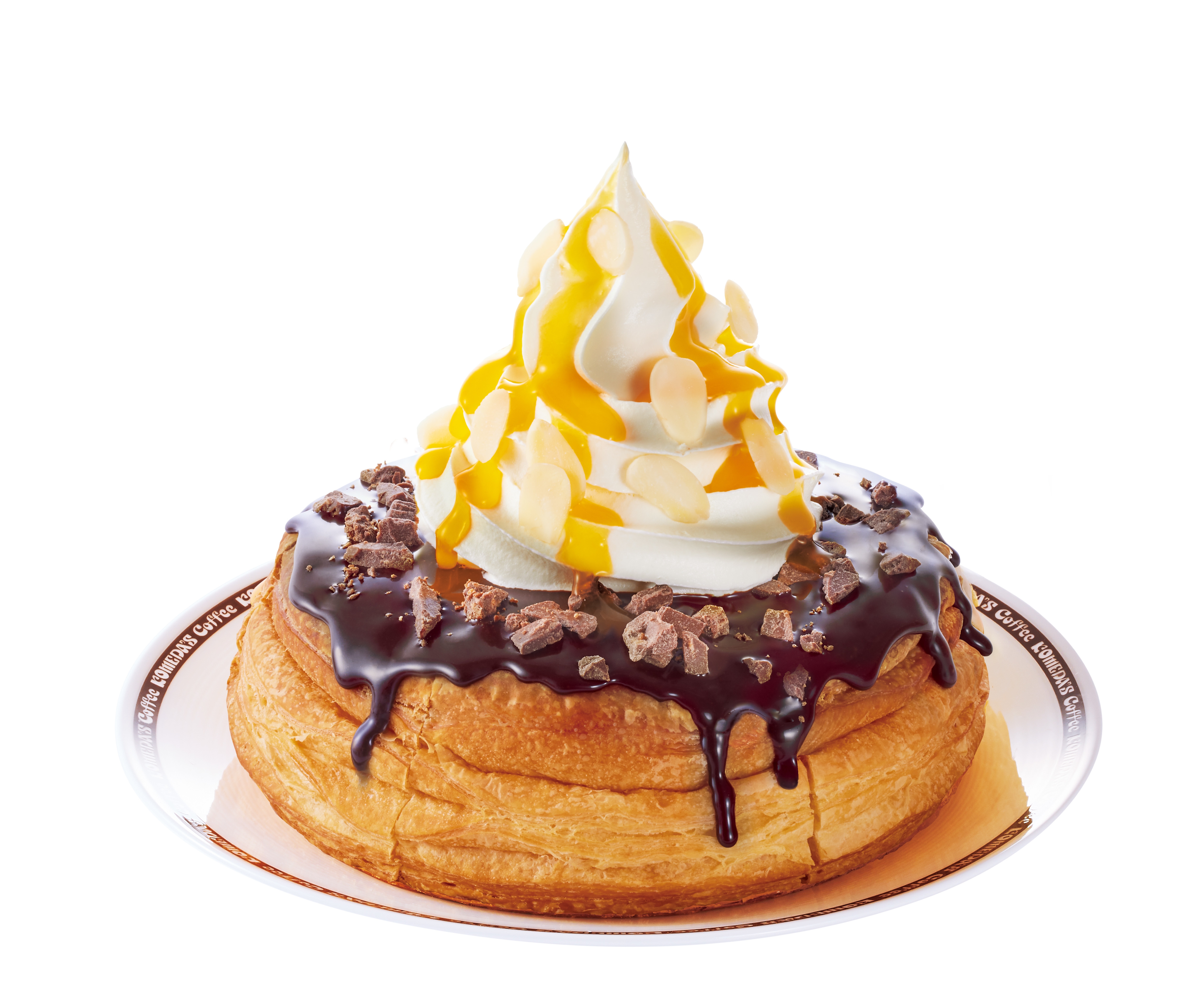 「シロノワール ショコラパッション」のために開発したショコラソースは、アロマのような華やかな香りと、なめらかな口あたり、深いコクが特徴で、デニッシュやソフトクリームとの相性も抜群です。上から爽やかな酸味とすっきりとした甘みのパッションフルーツソースをかけてアクセントに、仕上げにクラッシュショコラプレートと、アーモンドスライスをトッピングしました。なめらかなショコラソース、サクサクのショコラプレート、パリッとしたアーモンドの食感が楽しめます。食べ進めるごとに、デニッシュをコク深いショコラソースと甘酸っぱいパッションフルーツソースが包み込み、絶妙なハーモニーを奏でます。コメダからお客さまへお届けする“今だけの特別”を、心ゆくまでご堪能ください。