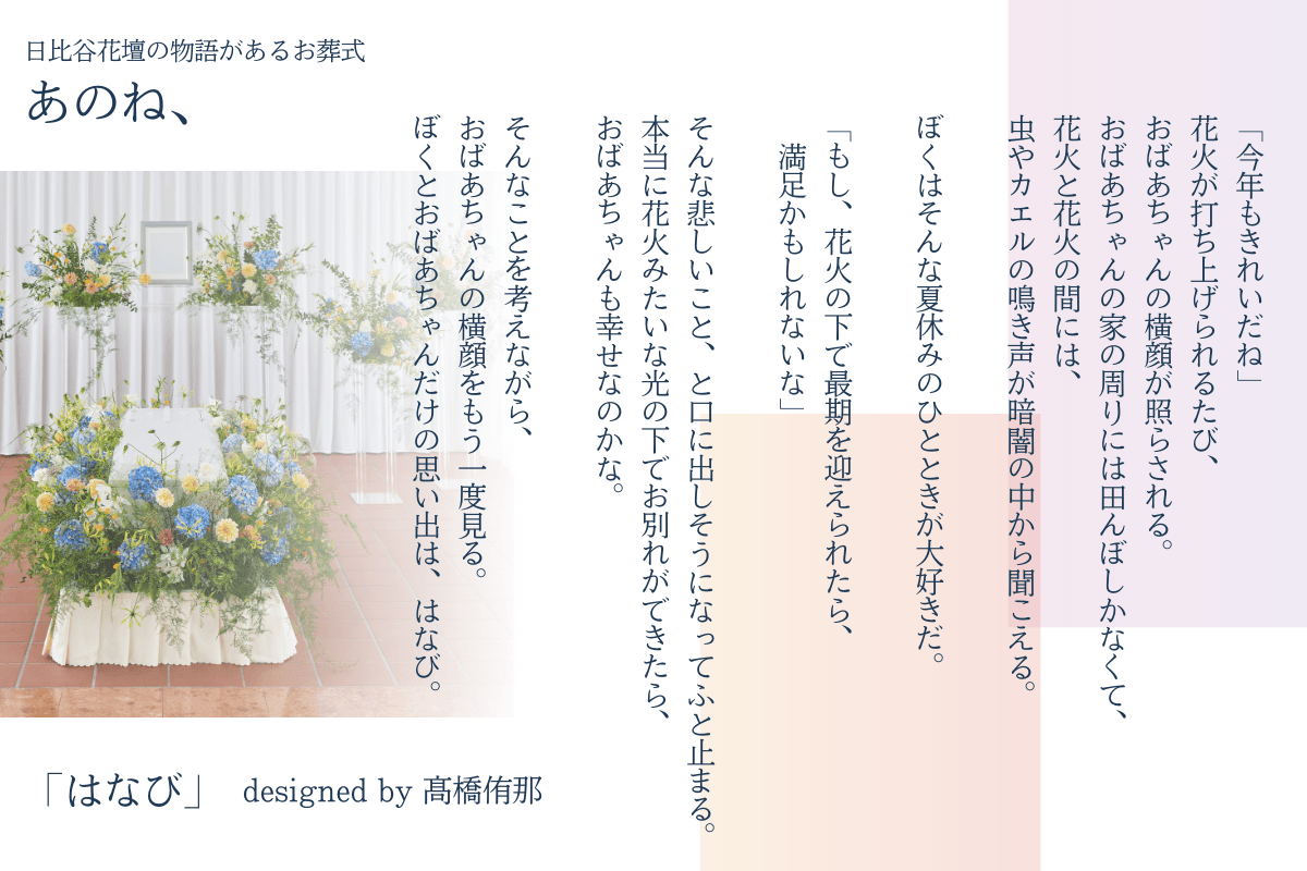 【商品名】「日比谷花壇の物語があるお葬式 あのね、」 はなび