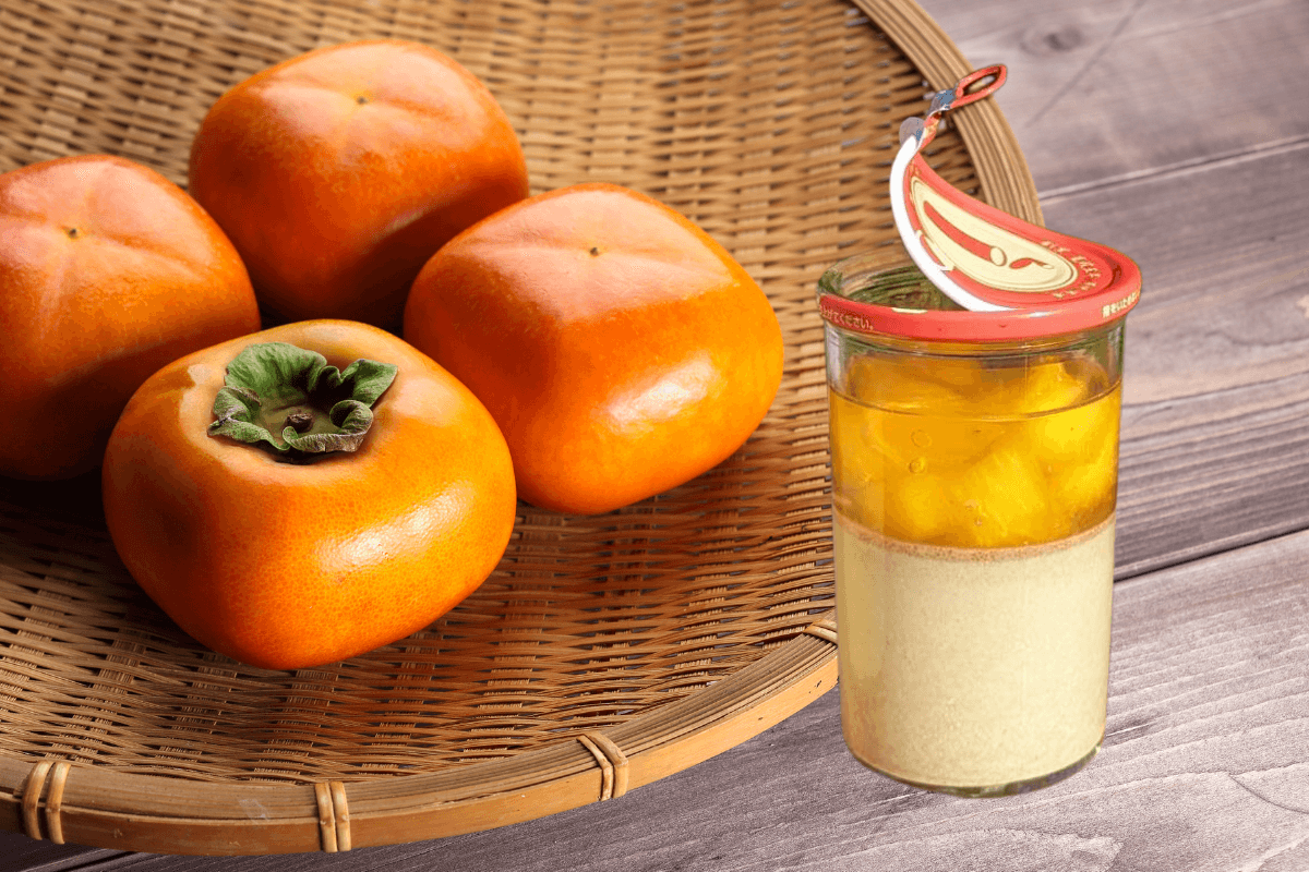 秋の代表果物の柿をトッピングした香ばしい宇治産ほうじ茶風味のプリン。ほろ苦いほうじ茶の香ばしさと、柿の甘みが絶妙に調和し、新感覚の和スイーツをお楽しみいただけます。