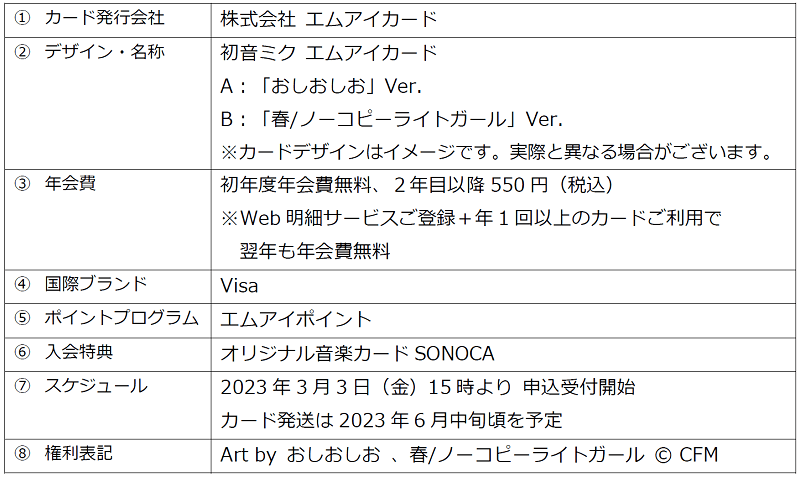 三越伊勢丹グループ 株式会社 エムアイカードから おしおしお氏、春/ノーコピーライトガール氏が描く 『初音ミク』クレジットカード誕生!
