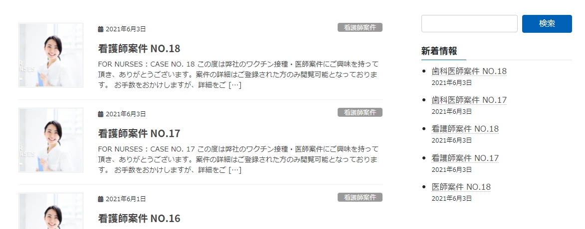 医師・歯科医師・看護師の各業種ごとのワクチン接種案件を、専用ページ(要パスワード)にて随時掲載しております。そちらをご覧頂き、ご希望に合った案件を応募してください。案件によっては人数に限りがございます。予めご了承ください。