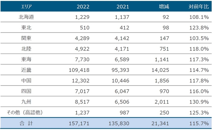 ●地元である近畿エリアの志願者数が昨年比114.7%で10万人を超えた