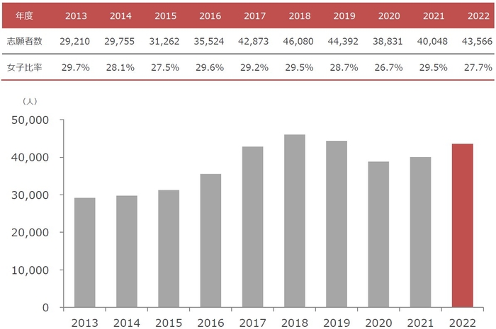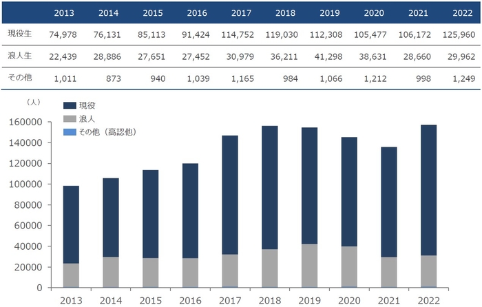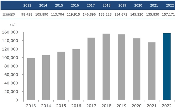 一般入試志願者数確定 157,171人 4年ぶりの増加で過去最多、現役生の志願者数は昨年比118.6%