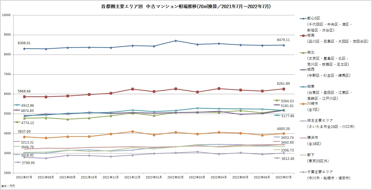 ■全国主要エリア 中古マンション相場推移(2021年7月~2022年7月)