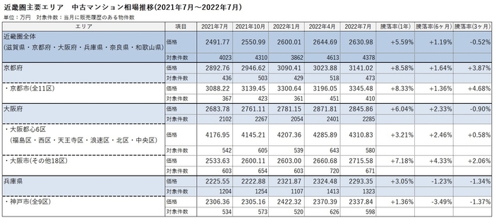 「マンションレビュー」2022年7月 全国主要エリア/47都道府県 中古マンション相場推移を発表