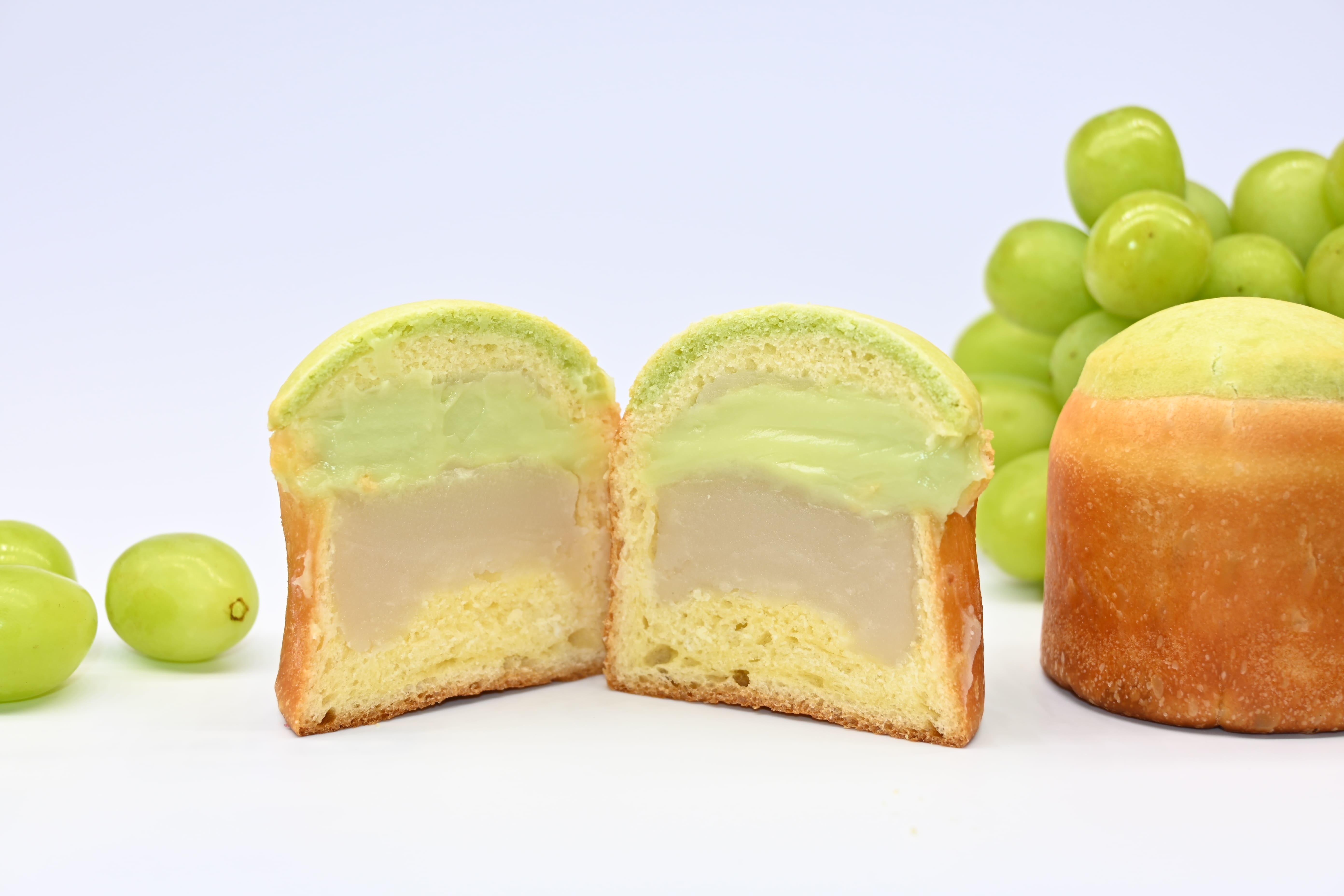 ベーカリーイモホレタ一番人気商品のおいもあんぱんのシリーズ第7弾。シャインマスカットクリームが白餡とマッチし爽やかでスッキリとした味に仕上がっています。