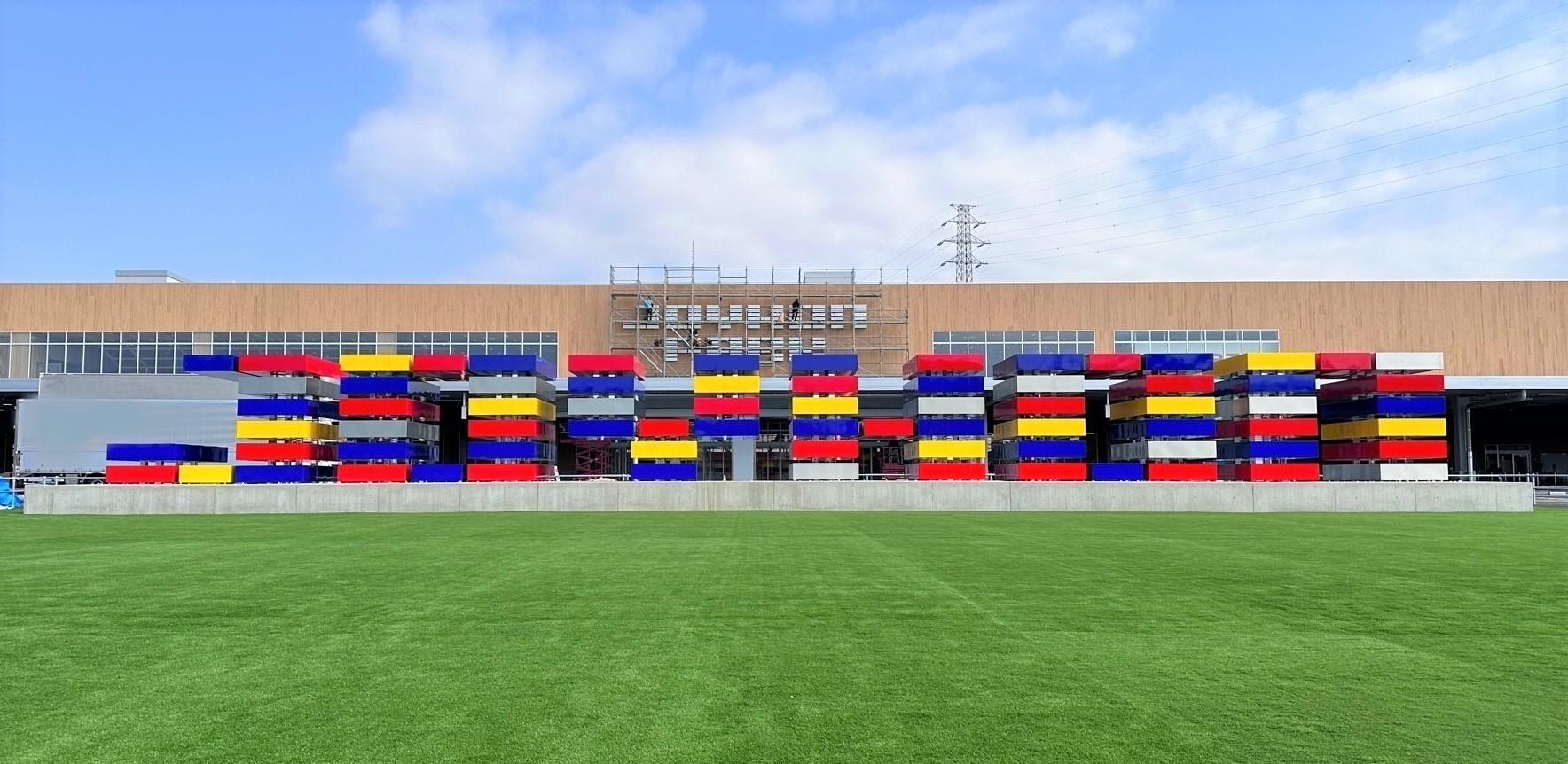 新しいJOYHON PARKを象徴する高さ約3m、長さ約31mのロゴアートオブジェがお客さまをお迎えします。ロゴアートオブジェの置かれる芝生広場はイベントスペースも兼ねており、キッチンカーも設置予定です。