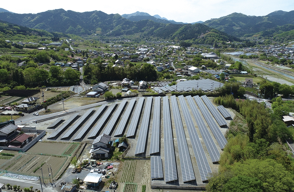 社屋の屋根に太陽光パネル、近隣の開発跡地に太陽光発電装置を設置し、自然エネルギーの活用と供給を推進。
