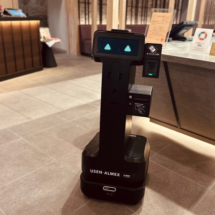 株式会社U-NEXT HOLDINGS(本社:東京都品川区、代表取締役社長CEO:宇野 康秀)のグループ会社である株式会社USEN-ALMEX(本社:東京都品川区、代表取締役社長:坪井 将之、以下、USEN-ALMEX)と株式会社スーパーホテル(本社:大阪府大阪市西区、代表取締役社長:山本 健策、以下、スーパーホテル)は、USEN-ALMEXがスーパーホテルの協力を得て開発したホテルフロントサービスロボット『ClerkBot(開発コードネーム)』(以下、ClerkBot)の導入に向けた実証実験を、スーパーホテルが運営する「湯元『花乃井』スーパーホテル大阪天然温泉」にて開始しました。実証実験では、「湯元『花乃井』スーパーホテル大阪天然温泉」のフロントスタッフとして『ClerkBot』1台が稼働、ゲストのチェックイン対応※2や「日本語・英語・韓国語・中国語(簡体字)」の4カ国語で温泉施設などの案内を行います。