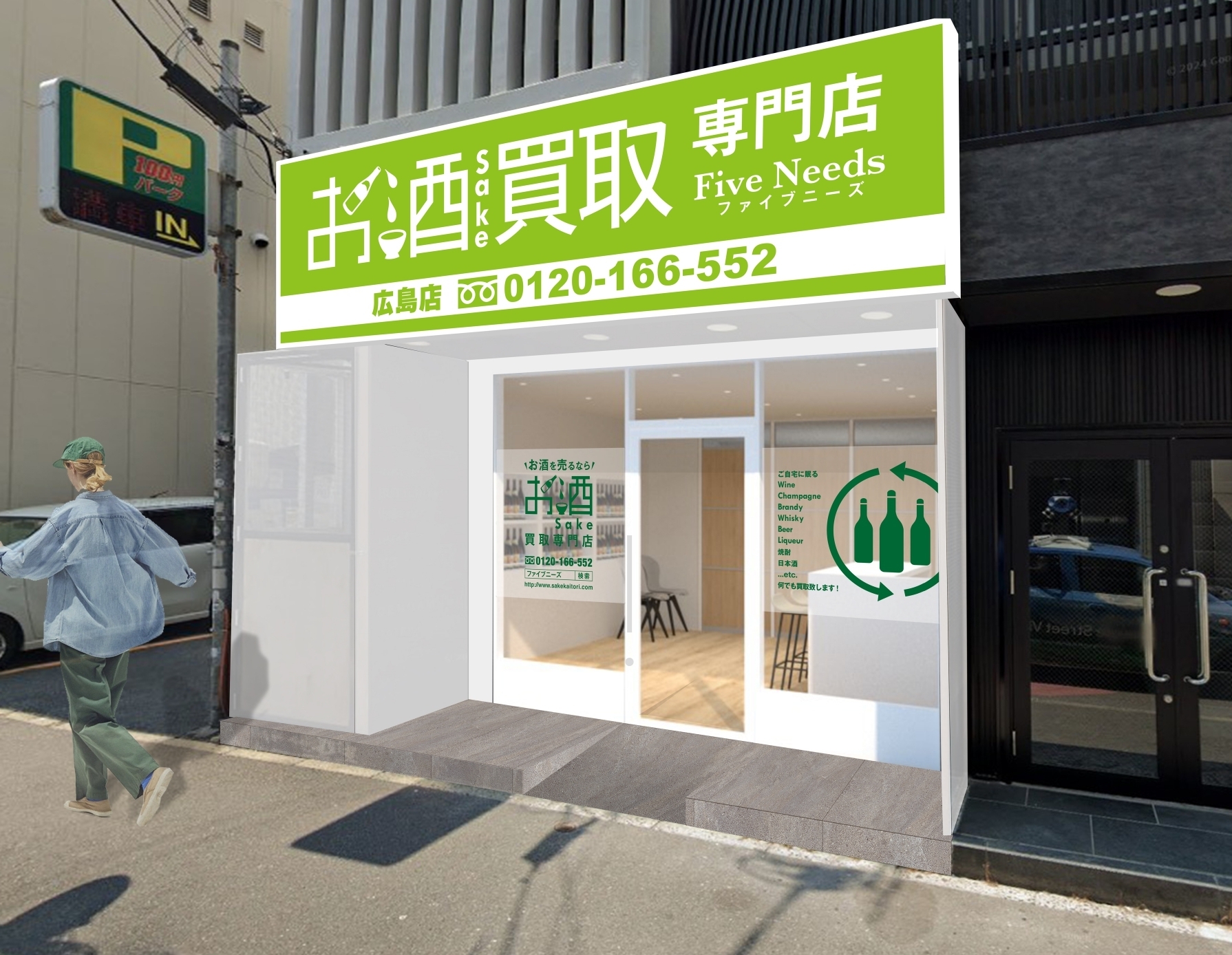 お酒買取専門店 FiveNeedsは中国四国地方では唯一の店舗となる「お酒買取専門店 FiveNeeds 広島店」をリニューアルオープンとして新たに広島市の中心に位置する中区三川町に出店する運びとなりました。今回の広島店含め全国14店舗を展開するお酒買取専門店 FiveNeedsですが皆様が足を運びやすく気軽にご利用いただける店舗となっております。