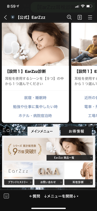 Q. 「LINEでEarZzz診断」で、自分の耳に合った耳栓に出会えますか?
