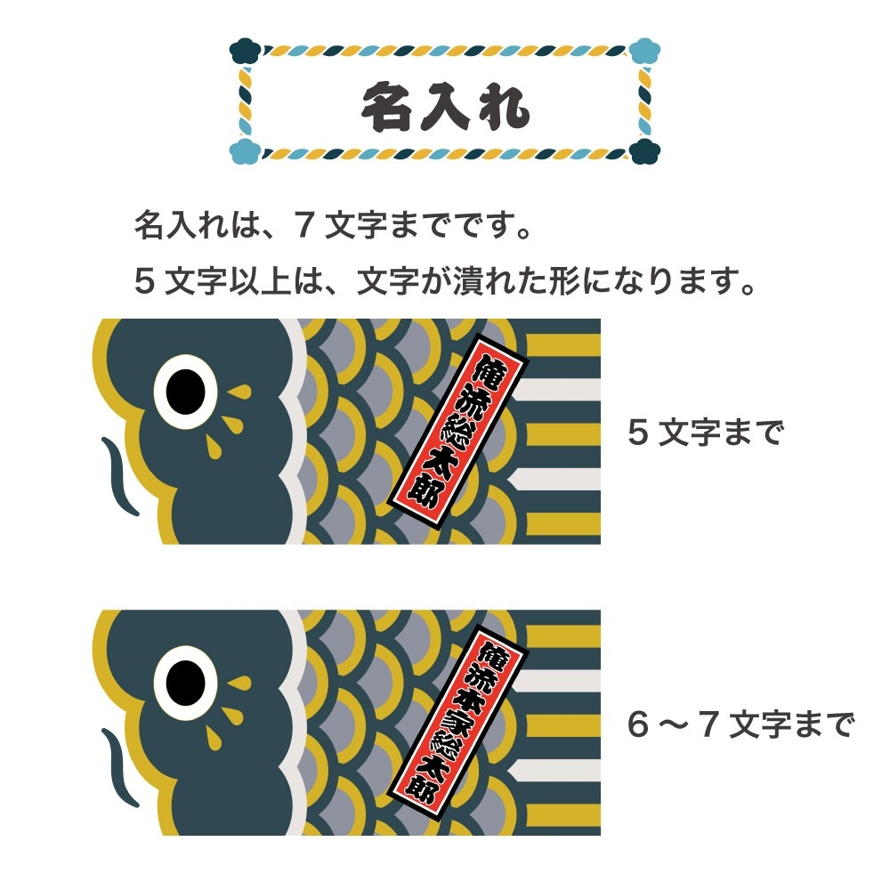 デザイン:鯉のぼり柄と千社札風名入れを組み合わせた和風デザイン