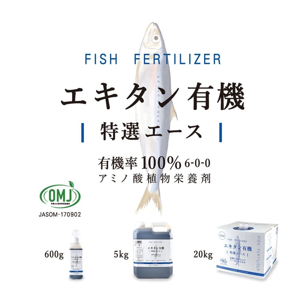 特徴 :有機質100%肥料で有機JASにも使えます。魚肉タンパクの濃縮エキスを酵素分解した液肥です。葉面散布でも潅水施肥でも効果がすぐに期待できます。野菜や果実のおいしさが増します。なり疲れを解消し作物の生育が旺盛になります。
