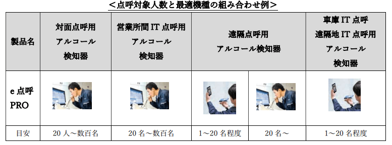 システムを使った点呼を実施する人数に応じて、最適な機種をお選びいただけます。
