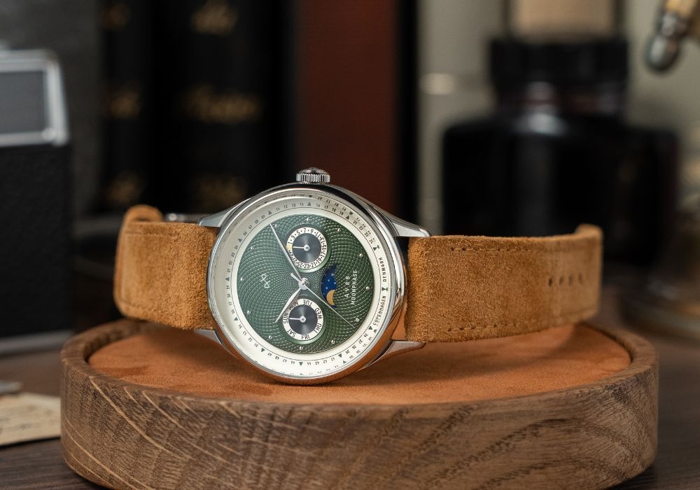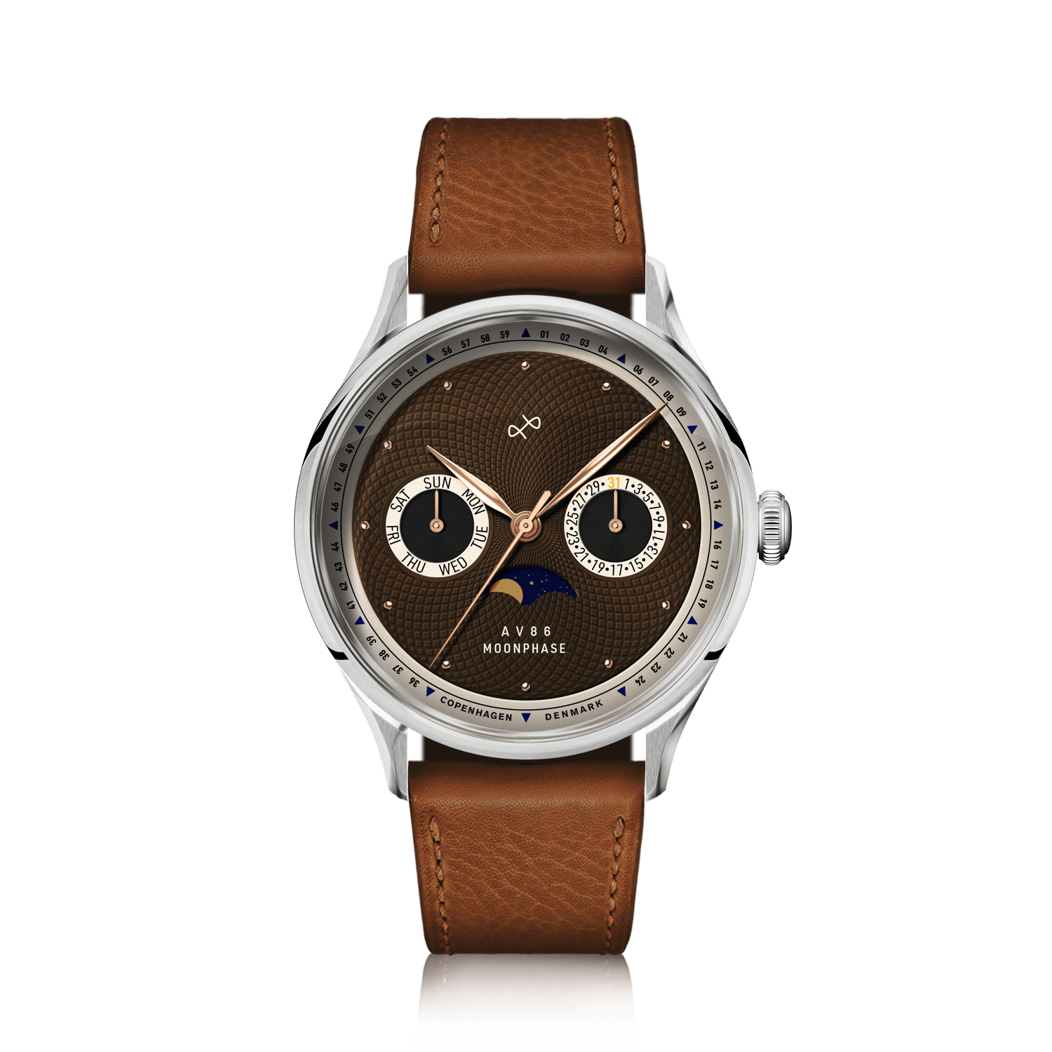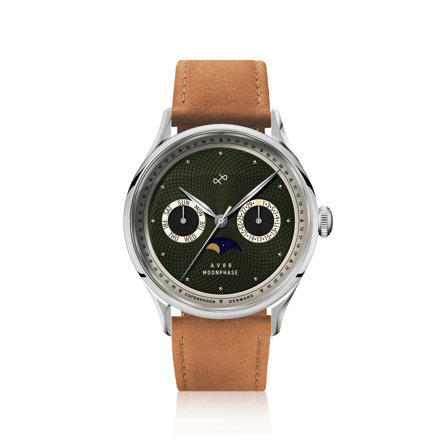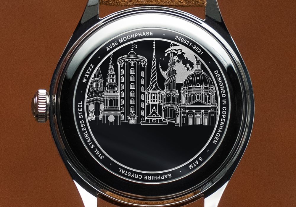 「1968 Moonphase Collection」は、AV86が展開するコレクションの中でも特に注目を集めるモデルです。月の満ち欠けを表示するムーンフェイズは、古くから時計愛好家に支持される複雑機構のひとつ。今回の新作では、クラシカルな魅力を残しつつも、北欧デザインらしいミニマリズムと現代的なケースフォルムを組み合わせています。