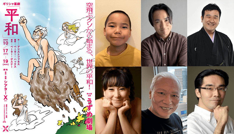 劇団うずめ劇場が、戦後80年の節目に、2500年前のギリシャ喜劇『平和』を日本初上演します。本作は、古代ギリシャのアリストファネス原作を旧東ドイツの劇作家ペーター・ハックスが翻案し、今回の上演に向けて後藤絢子が日本語訳しました。