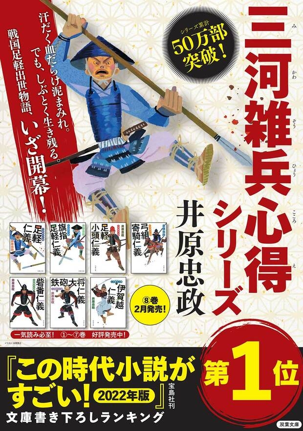 宝島社から6年ぶりに出版された時代小説のランキングガイドブック「この時代小説がすごい!2022年版」の文庫書下ろし時代小説ランキングにて、井原忠政さん著『三河雑兵心得』シリーズ(双葉文庫)が1位を獲得しました。同ランキングは、書店員や書評家など、時代小説の目利きの方が本当に面白い時代小説を選んでいます。