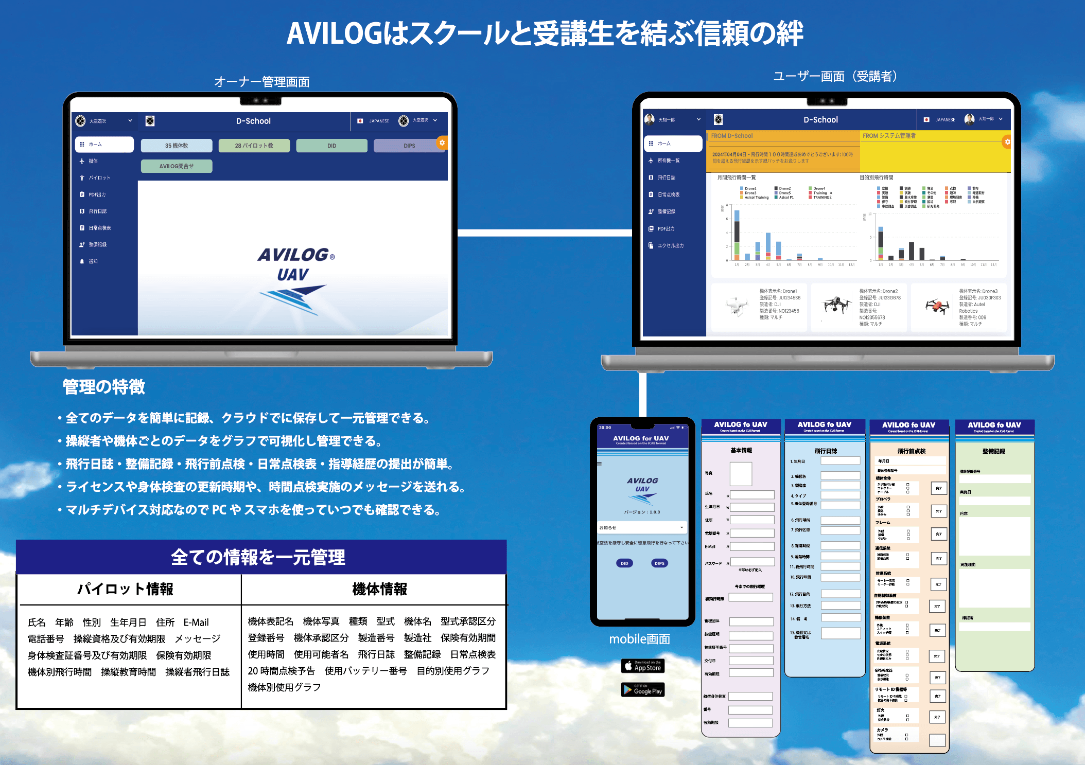 ドローンスクール受講者の継続的成長支援にも活用できる 運航管理ソフト「AVILOG」を11月1日に提供開始