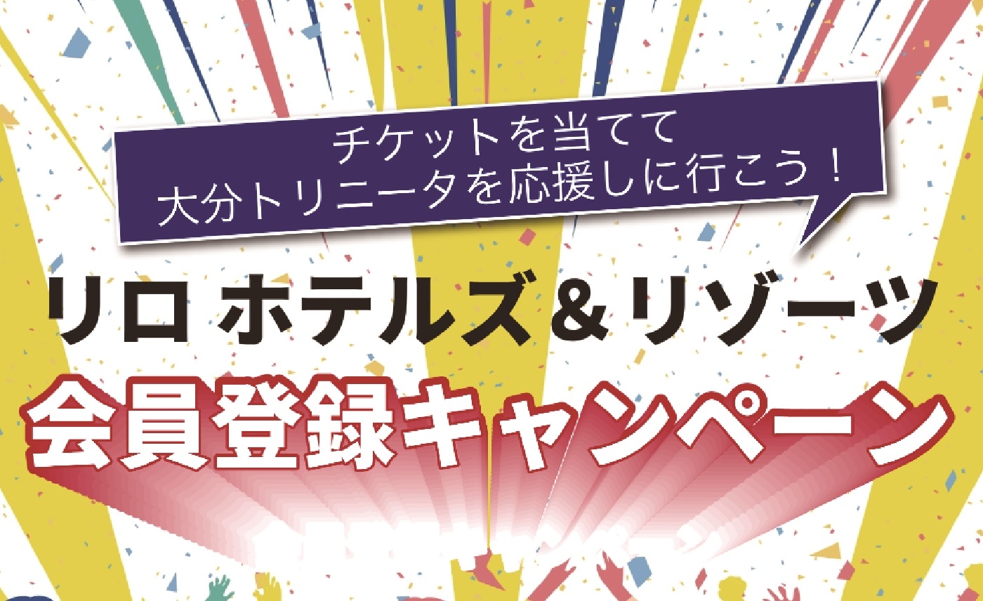 「株式会社リロバケーションズ(本社:東京都新宿区新宿5丁目17番9号、代表取締役社長 田村佳克(たむらよしかつ)」のホテル・旅館運営再生事業「Relo Hotels&Resorts(リロホテルズ&リゾーツ)」は、地域振興の一環として2022年8月16日(火)~ 2022年9月15日(木)まで、大分トリニータのペア観戦チケットや「ゆとりろ別府」「別府風雅」のペア宿泊券が抽選で当たる【リロホテルズ&リゾーツ会員登録キャンペーン】を開始いたしました。8月20日のホームゲームで勝利した場合は当選数が2倍に。是非この機会に皆様奮ってご参加ください。