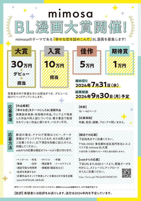【大賞賞金30万】BL漫画大賞を開催【mimosa】 | NEWSCAST